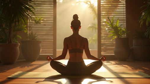 El piso de bambú, los paneles acústicos y la iluminación cálida crean una atmósfera introspectiva que favorece la respiración, la concentración y la conciencia corporal. Ideal para clases grupales o práctica personal.